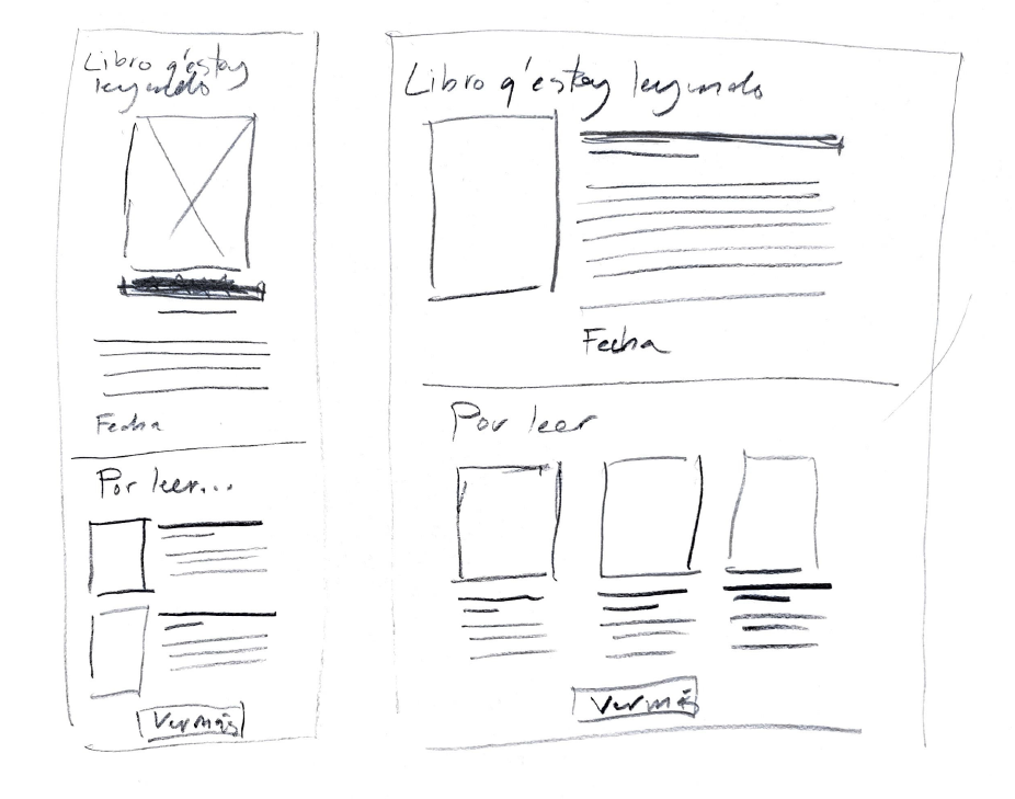 No espero perfección en wireframes. Por ejemplo en “por leer” hay 2 en móvil y 3 en ordenador. Pero se entiende la intención.